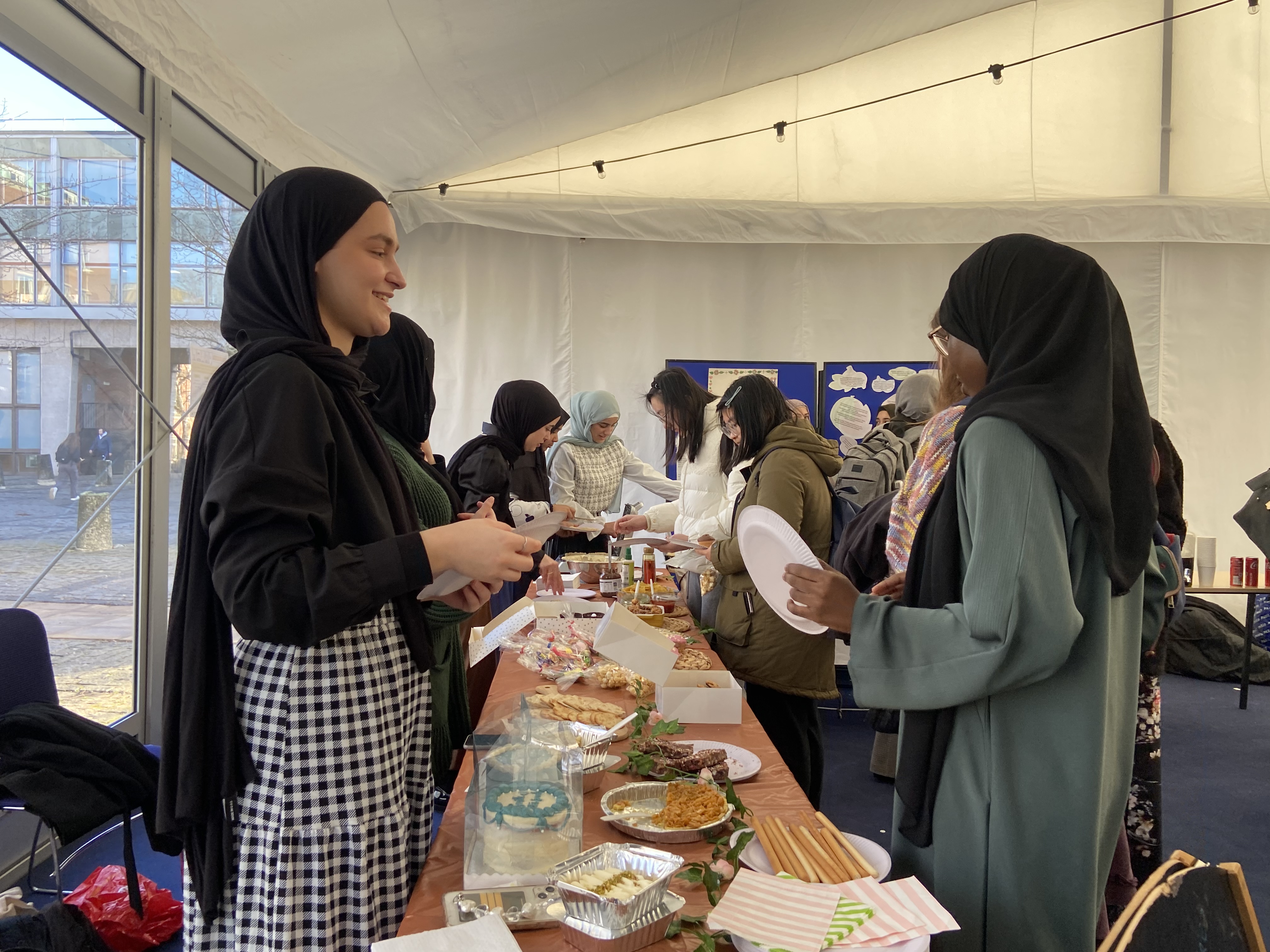 Stalls provide the opportunity for insightful discussion, a chance to take part in activities like trying on a Hijab and calligraphy, to feeding our hearts through the ISoc Cafe and Lunch where there is FREE food on offer throughout the entire week!